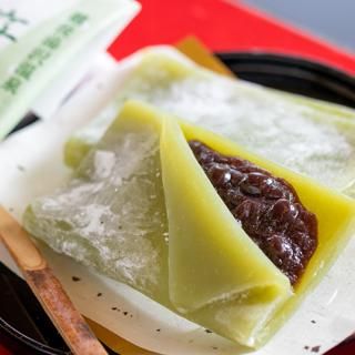 笹の香りの柔らかな餅で、つぶ餡をふわりとやさしく包みました。